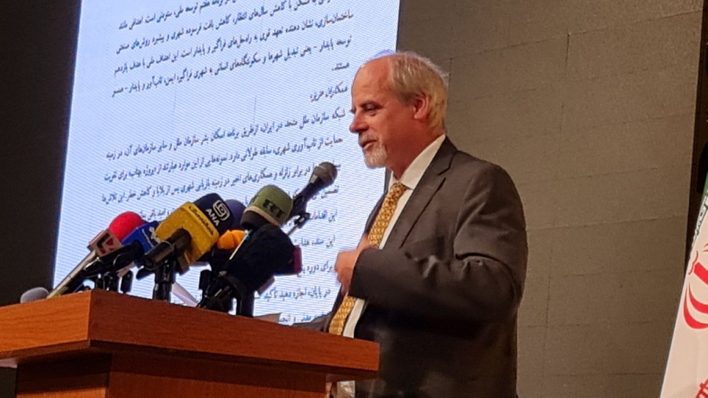 هماهنگکننده سازمان ملل در ایران همچنین به همکاریهای این سازمان با دولت ایران در زمینه تابآوری شهری اشاره کرد ، از جمله پروژه «بهتاب» برای مقاومسازی بیمارستانها در برابر زلزله و برنامههای بازیابی شهری پس از بلایا .